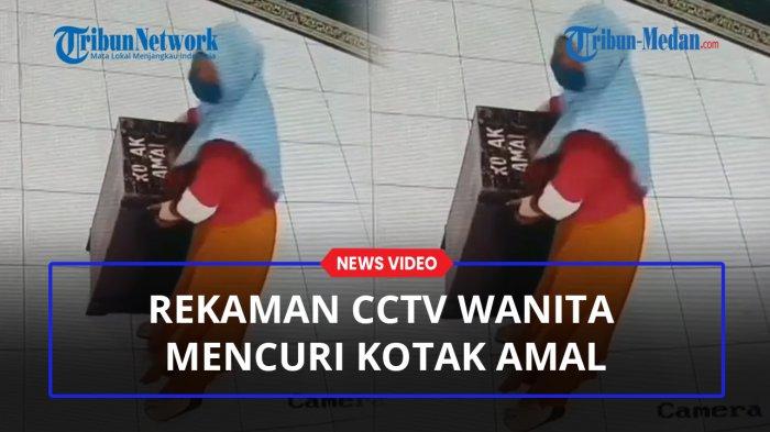 Dalam video hasil rekaman CCTV itu, tampak seorang wanita mengangkat kotak amal berukuran besar yang tersimpan di dalam masjid.