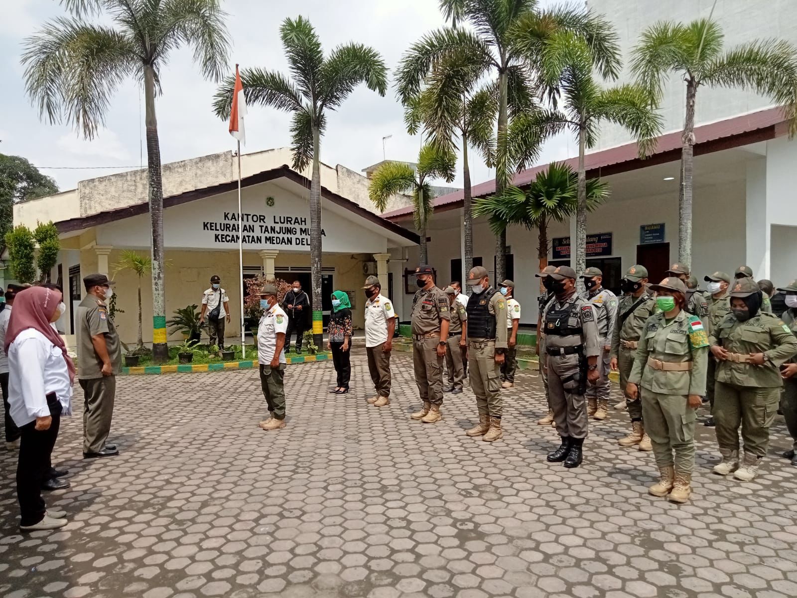 Sebelum melancarkan aksi penertiban, para petugas menggelar apel di halaman kantor Kelurahan Tanjung Mulia.