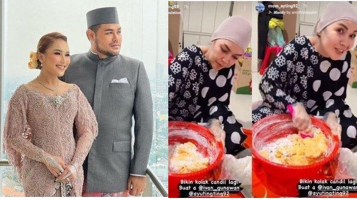 Dalam posting-an Instagram Story milik @mom_ayting92_, Umi Kalsum terlihat sedang membuat adonan kolak candil.