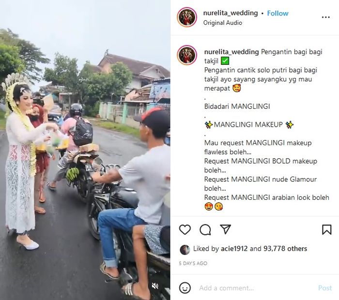 Mirip Mendiang Vanessa Angeel, Pengantin Cantik ini Terciduk Bagi-bagi Takjil dengan Pakaian Kebaya Lengkap, Netizen Puji Setinggi Langit