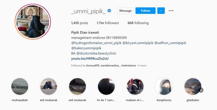 Dalam bio Instagram pribadinya, Umi Pipik mencantumkan status BA @doctorsiska.beautyclinic yang menjadi salah satu ladang penghasilan ibunda Abidzar itu.