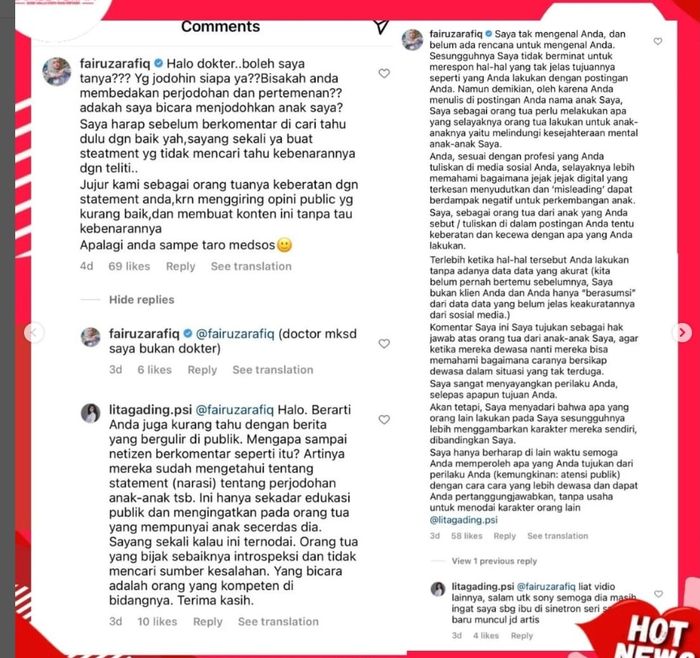 "Kalo menurut aku memang betul kata dokter lita . Ini sifatnya edukasi juga buat netizen . Jangan suka jodoh2in apalagi anak2," @mely***.
