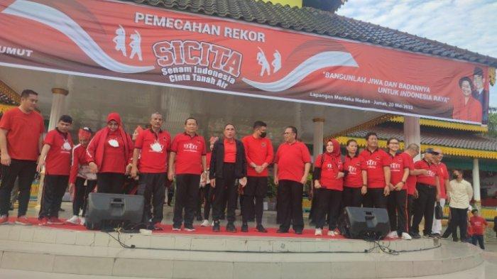 Edy Rahmayadi dan Bobby Nasution ikut memeriahkan kegiatan senam sehat yang diadakan DPD PDI Perjuangan Sumut.