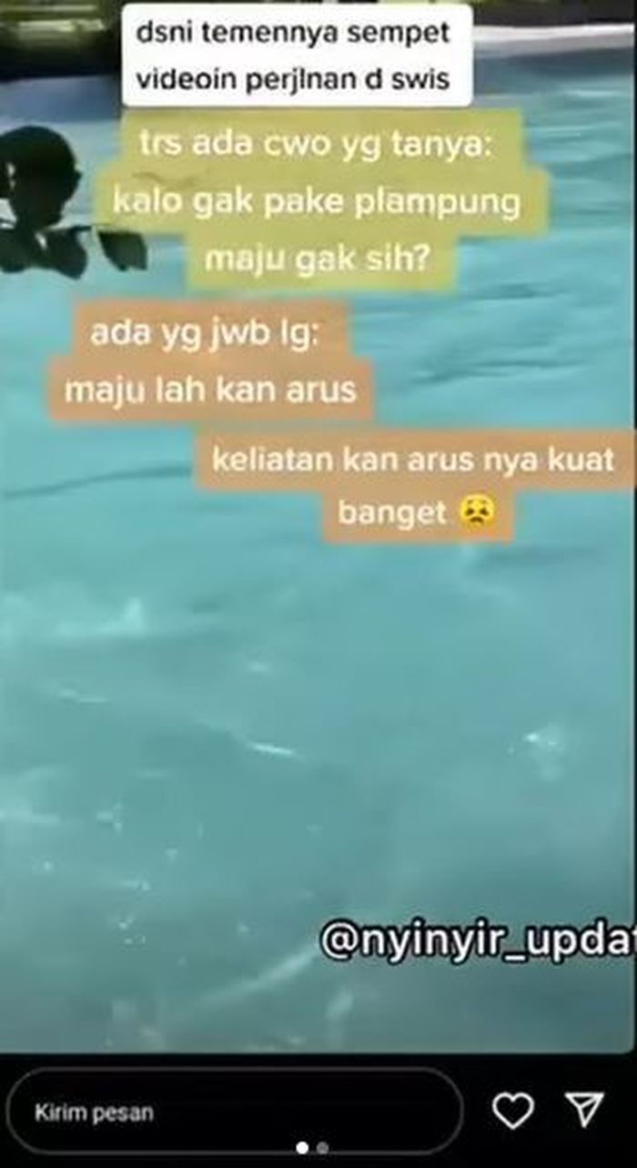 Teman anak Ridwan Kamil itu juga merekam arus sungai yang cukup deras saat sampai di Sungai Aare, Swiss.