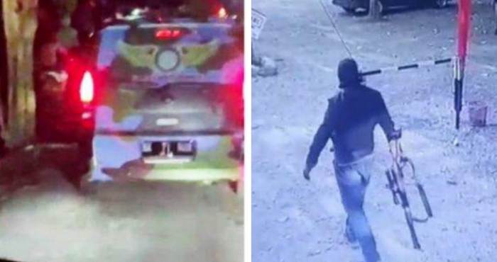 Beberapa video yang tersebar, memperlihatkan adanya pelaku yang diduga membawa senjata api laras panjang.