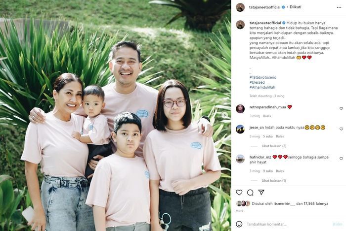 "MasyaAllah.. Alhamdulillah," tulis Tata Janeeta.