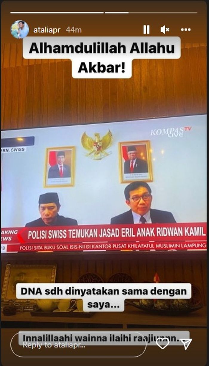 'Allahuakbar!' Atalia Tak Bisa Bendung Rasa Syukurnya Saat Dengar Kabar Penemuan Jasad Eril