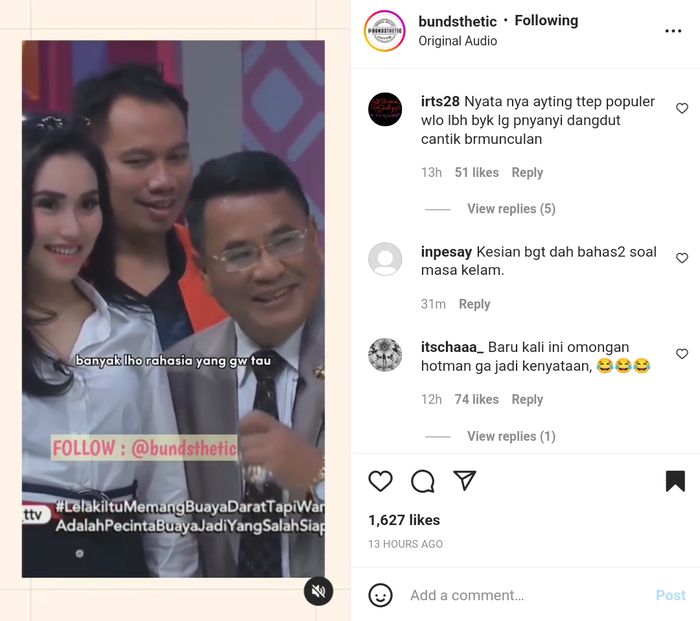 "Nyatanya Ayu Ting Ting tetap populer walaupun banyak penyanyi dangdut bermunculan," tulis akun @irts28.