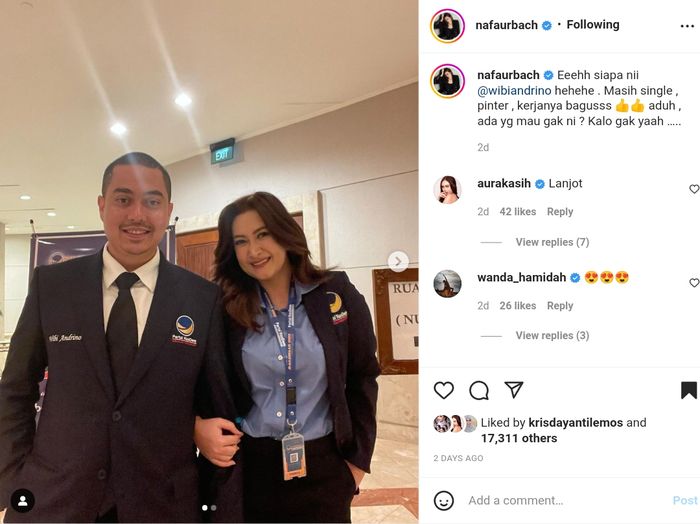 "Jujur aku lg nunggu2 mba nafa nduwe gandengan baru @nafaurbach," timpal akun @dayu_***.