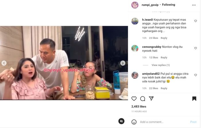 "Keputusan yg tepat Mas Angga, nggak usah pertahanin dan nggak usah hargain orang yang nggak bisa ngehargain orang," tulis akun @h.iwan0.