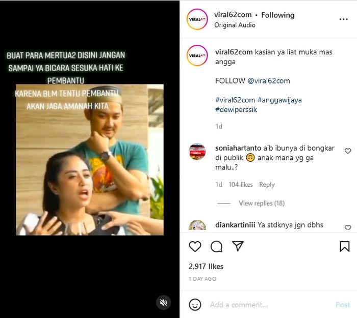 Postingan akun IG @viral62.com. 'Emang Anaknya Diapain Gua!', Pantas Digugat Cerai, Dewi Perssik Sempat Nyinyiri Mertuanya di Hadapan Angga Wijaya, Netizen: Anak Mana yang Gak Malu?
