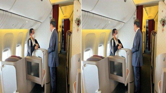 Sekretaris Kabinet (Seskab) Pramono Anung lewat akun Instagram pribadi @pramonanungw, membagikan fotonya sedang berbincang dengan Presiden Jokowi di dalam pesawat.