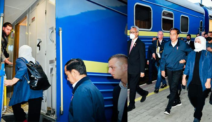 Kereta yang membawa rombongan Presiden Jokowi dan Ibu Iriana menggunakan Kereta Luar Biasa yang disiapkan oleh Pemerintah Ukraina.