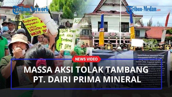 TRIBUN-MEDAN.com, SIDIKALANG - Massa aksi menolak tambang PT Dairi Prima Mineral (DPM) menggelar aksi unjuk rasa di depan Kantor DPRD dan Kantor Bupati Dairi yang berada di Jalan Disingamaraja Kecamatan Sidikalang, Kamis (30/6/2022).