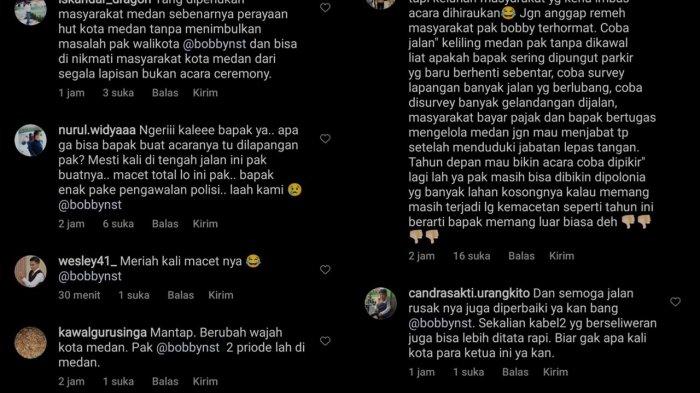 "Enak ya pak, kita rakyat yang mampus, enggak bapak pikirkan rakyat Medan yang kena macet sampai ke jalan jalan kecil, terimakasih ya pak Bobby 1 jamnya," tulis staven_taneka92 di kolom komentar Instagram resmi Walikota Medan Bobby.