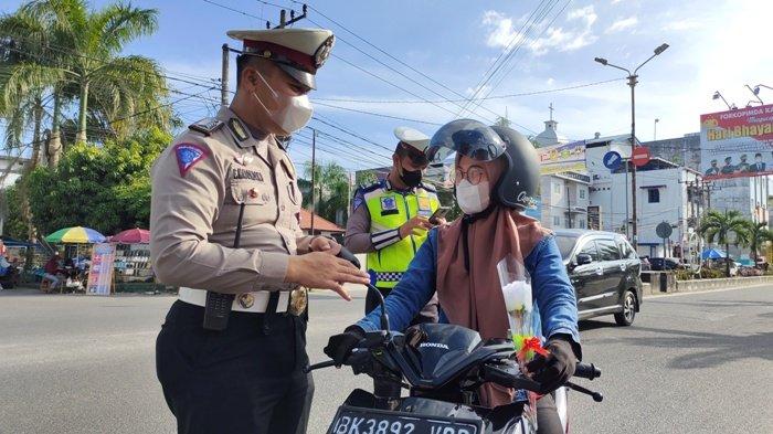 "Sembari membagi Beberapa kuntum bunga, kami juga menghimbau kepada pengendara agar berhati-hati dan melengkapi surat-surat hingga helmnya," pungkasnya.