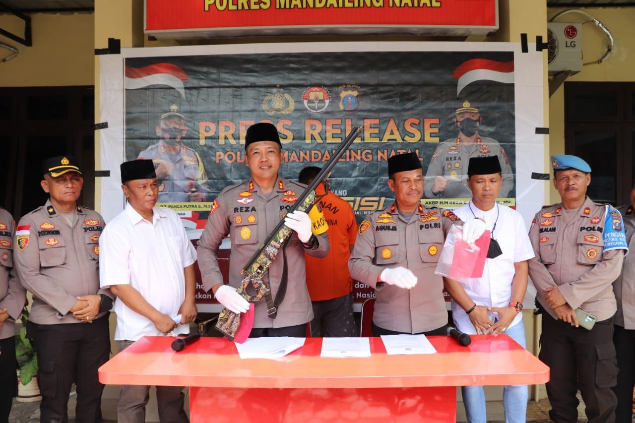 TRIBUN-MEDAN.com, MADINA - Kapolres Madina AKBP H M Reza Chairul Akbar mengungkap pelaku penembakan AW warga Kelurahan Pasar Muara Sipongi, Kecamatan Muara Sipongi, Kabupaten Madina.