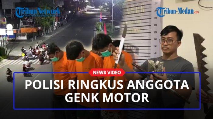 TRIBUN-MEDAN.com, MEDAN - Lima orang komplotan geng motor, yang serang emak - emak hingga terluka parah telah diamankan polisi.