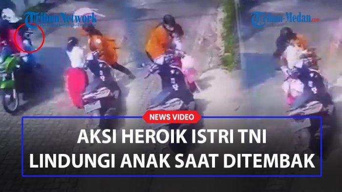 Dalam rekaman CCTV terlihat istri prajurit TNI itu langsung melindungi anaknya sesaat setelah ditembak OTK didepan rumahnya.
