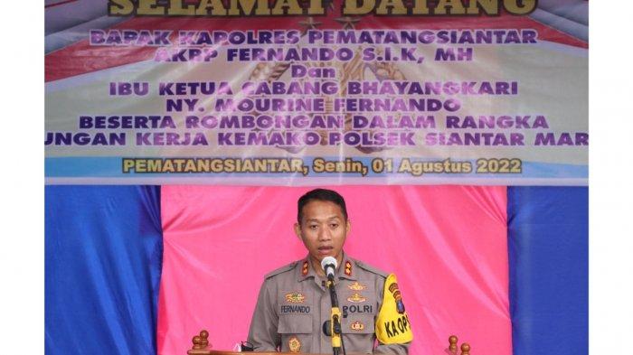TRIBUN-MEDAN.com, SIANTAR - Kapolres Pematangsiantar AKBP Fernando bersama dengan Ketua Bhayangkari Cabang Polres Pematangsiantar Ny Mourine Fernando melaksanakan kunjungan kerja (Kunker) ke Polsek Siantar Martoba dan Polsek Siantar Timur.