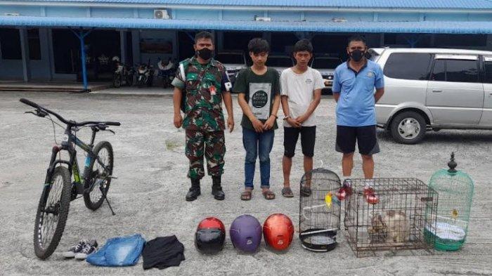 Dua maling tertangkap beraksi di kompleks TNI AU. Barang bukti yang didapati yakni, sepeda, helm, sarang burung, pakaian dan sepatu.