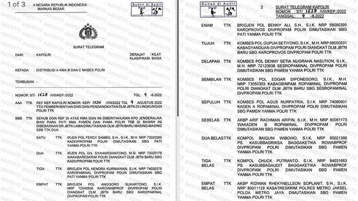 KAPOLRI Jenderal Listyo Sigit Prabowo Mutasikan Irjen Ferdy Sambo dan Tim Squadnya, Ini Nama-namanya
