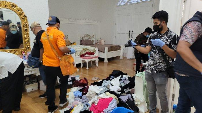 TRIBUN-MEDAN.com, MEDAN - Tim gabungan Direktorat (Dit) Reskrimsus Polda Sumut dan Polrestabes Medan melakukan penggeledahan rumah mewah milik ABK bos judi online di Jalan Palem, Kompleks Cemara Asri, Jumat (19/8/2022).