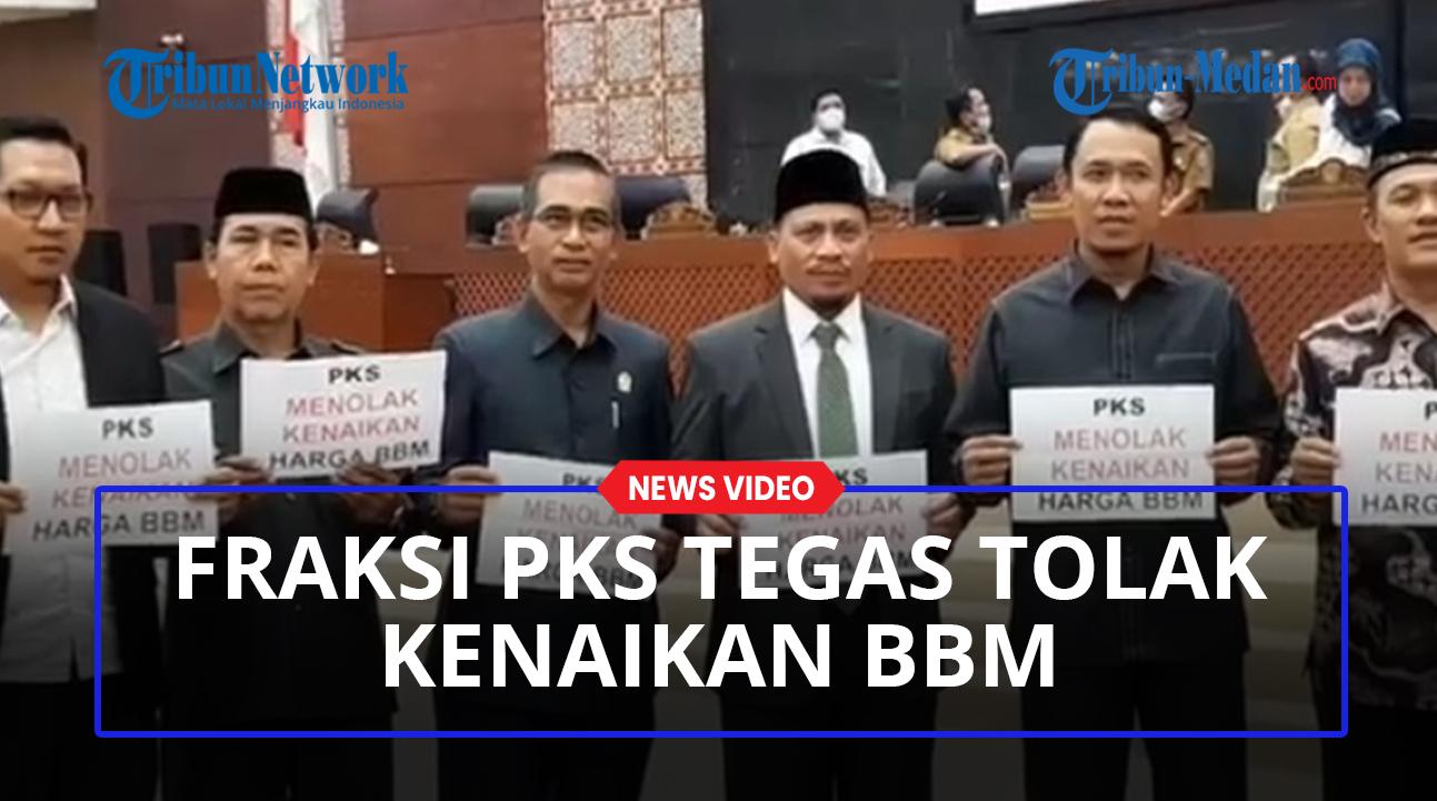 TRIBUN-MEDAN.COM, MEDAN - Fraksi Partai Keadilan Sejahtera (PKS) DPRD Sumatera Utara kompak membawa poster bertuliskan “PKS Menolak Kenaikan Harga BBM” saat Rapat Paripurna di gedung paripurna DPRD Sumut, Jalan Imam Bonjol Medan, Senin (5/9/2022).