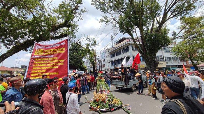 Dalam unjuk rasa tersebut, para peserta aksi juga membawa tumpeng raksasa yang berisikan hasil panen dari petani.