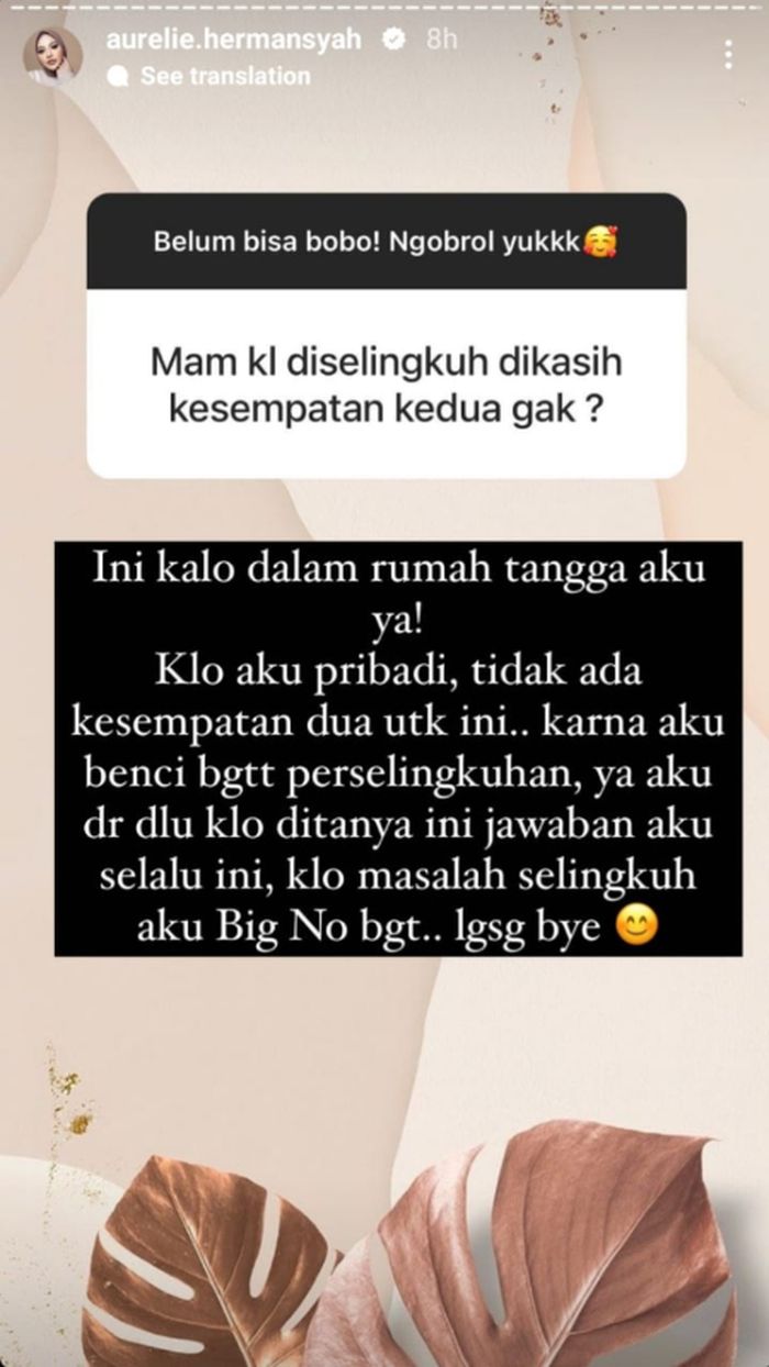 Dalam postingan tanya jawabnya tersebut, salah seorang netizen bertanya pendapat Aurel Hermansyah mengenai perselingkuhan.