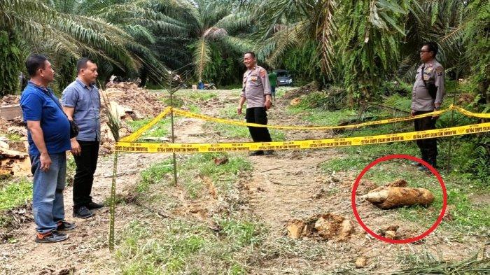 TRIBUN-MEDAN.COM,LANGKAT - Penemuan mortir raksasa di areal kebun LNK Tanjung Beringin, Divisi II, Kecamatan Hinai, Kabupaten Langkat, Sumatera Utara, bikin heboh masyarakat.