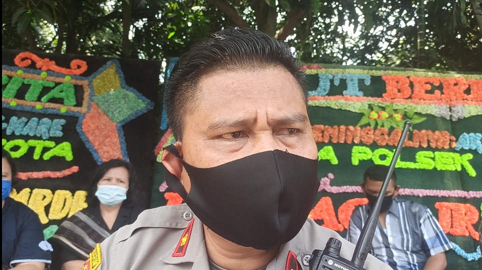 Kapolsek Medan Area Kompol Faidir Chaniago saat melayat ke rumah duka AKP Sangkot Simaremare pada Sabtu (30/5/2020)