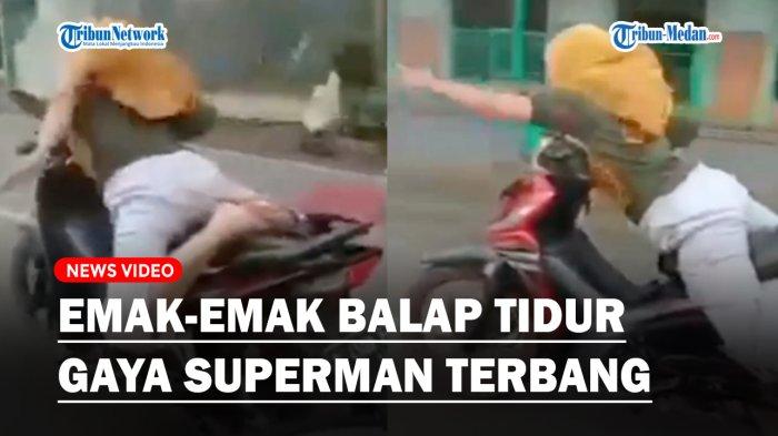TRIBUN-MEDAN.COM - Viral aksi emak-emak balap tidur di atas sepeda motor, gayanya mirip Superman lagi terbang.