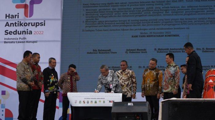 Puncak Peringata Hari Anti Korupsi Se Dunia ini turut dihadiri oleh Wakil Ketua Komisi Pemberantasan Korupsi (KPK) RI, Alexander Marwata, Gubernur Sumut, Edy Rahmayadi.