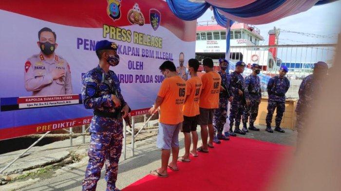TRIBUN-MEDAN.com, MEDAN - Direktorat Polisi Air dan Udara Polda Sumut menangkap tiga orang tersangka terkait BBM solar oplosan melalui kapal tanker SPOB Endo Budiarto Bersaudara 05 di Pelabuhan Belawan.