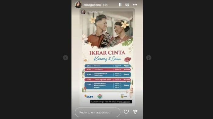 Hal tersebut terungkap dalam unggahan Instagram Story @erinagudono, Selasa (6/12/2022).