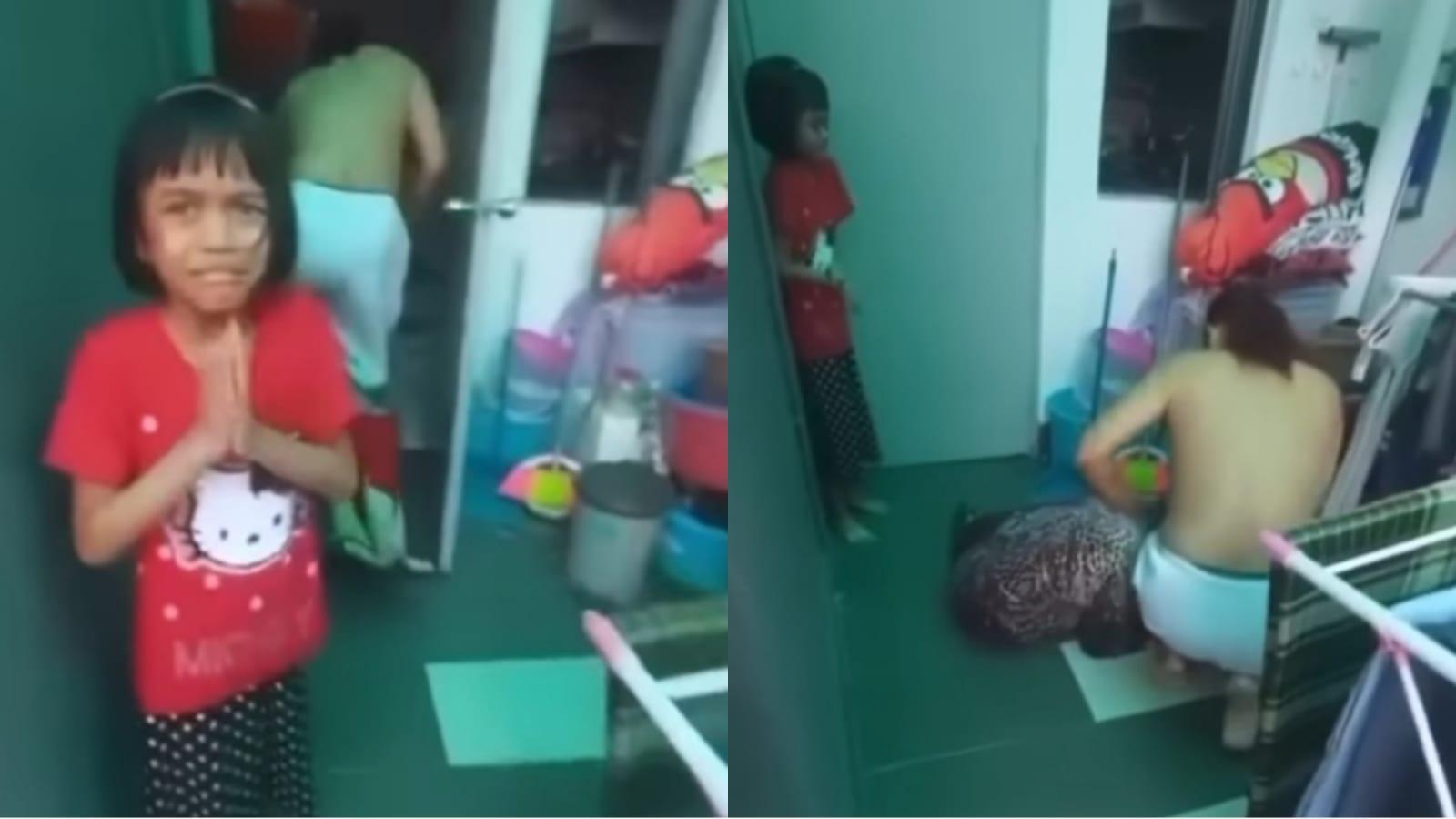 Anak tersebut juga mengatupkan kedua tangannya layaknya memohon pertolongan dari perekam video tersebut.