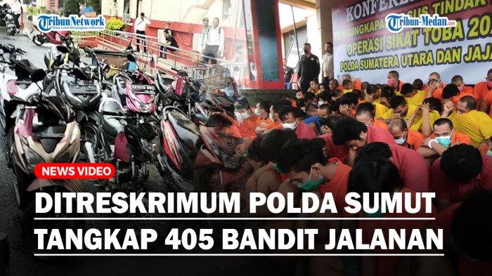 TRIBUN-MEDAN.com, MEDAN - Direktorat Reserse Kriminal Umum Polda Sumatera Utara beserta Polres jajaran menangkap 405 bandit jalanan yang meresahkan dalam operasi sikat Toba 2022.