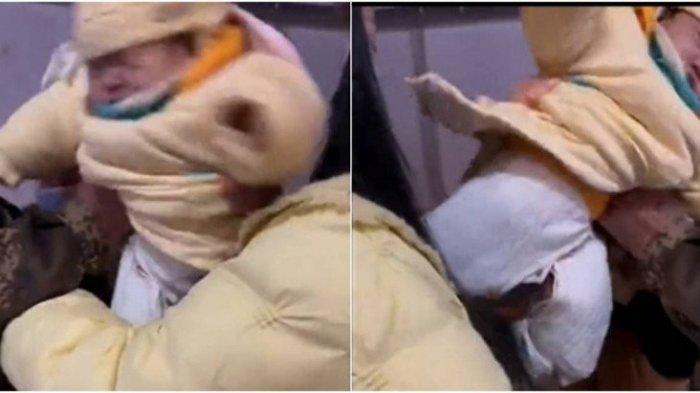 Melihat pertengkaran pasangan itu, sang ayah mertua pun kehilangan kesabaran dan langsung melemparkan sang cucu ke arah sang menantu.