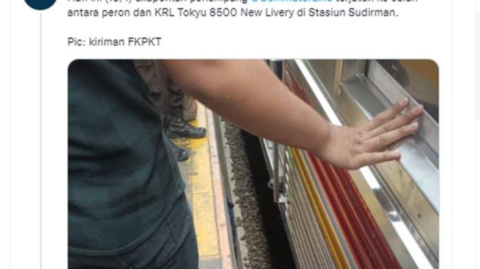 "Hari ini (18/1) dilaporkan penumpang @CommuterLine terjatuh ke celah antara peron dan KRL Tokyu 8500 New Livery di Stasiun Sudirman," narasi pengunggah.