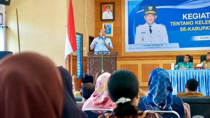 TRIBUN-MEDAN.COM, STABAT - Plt Bupati Langkat, Syah Afandin menghadiri sosialisasi permendagri Nomor 18 Tahun 2018, Tentang kelembagaan posyandu di desa se-Kabupaten Langkat Tahun 2023, Selasa (7/3/2023).