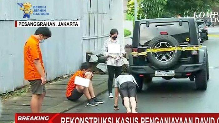 Dalam salah satu reka adegan ulang kasus penganiayaan David Ozora yang dilakukan anak eks pejabat pajak, Mario Dandy Satriyo, terungkap sebelum mengan