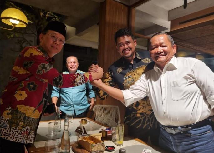Ketua DPD PDI Perjuangan Sumatra Utara Rapidin Simbolon mengajak Wali Kota Medan Bobby Nasution dan Ketua DPRD Medan Hasyim ngopi bersama