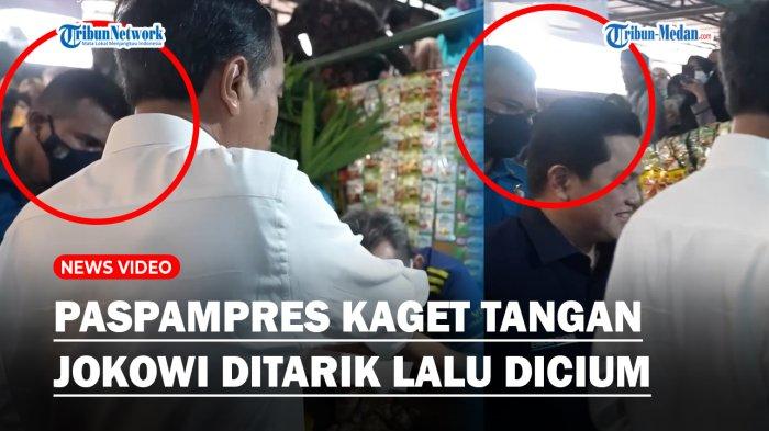 TRIBUN-MEDAN.Com, Reaksi Paspampres jadi sorotan saat tangan Presiden Jokowi tiba-tiba ditarik oleh seorang pedagang di Pasar Tugu Depok pada Kamis (13/4/2023).