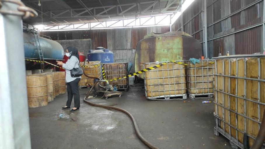 Begitu berhasil masuk ke dalam gudang, pada bagian gudang pertama terlihat dua tangki BBM berwarna biru dan hijau.
