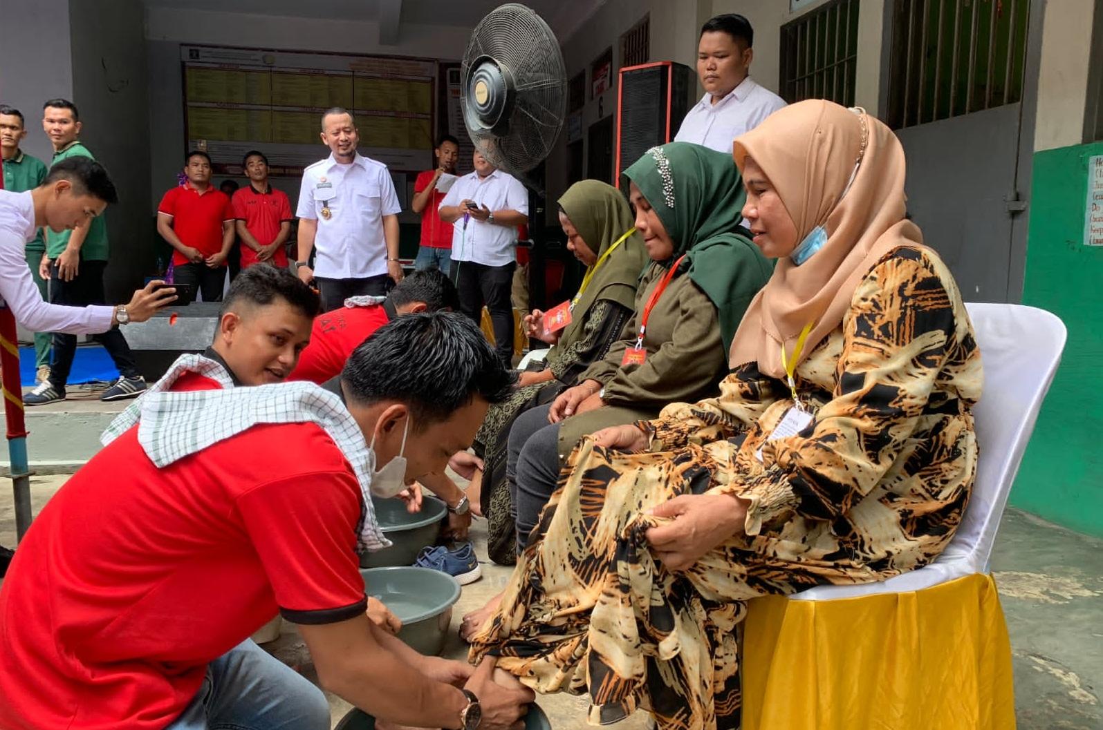 Momen haru terjadi di Lembaga Pemasyarakatan (Lapas) Narkotika Klas IIA Langkat, saat para Warga Binaan membasuh telapak kaki ibu mereka yang hadir