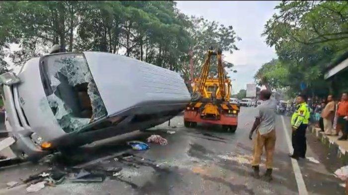Polisi Beberkan Penyebab Mini Bus Berpenumpang Terguling di Tebinggtinggi, Sopir Melarikan Diri