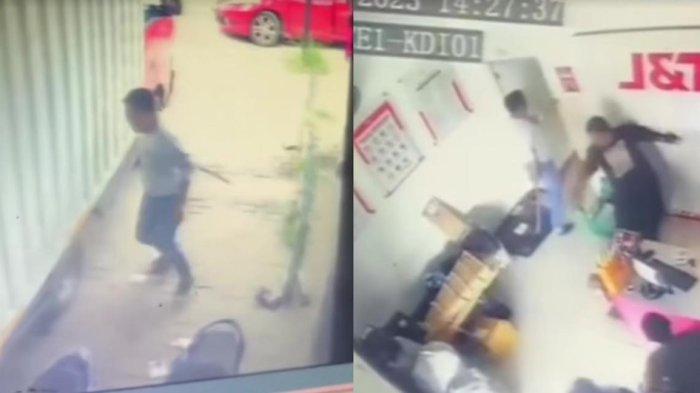 Aksi pria yang ngamuk dan membawa parang ke ke kantor pengiriman barang tersebut berhasil terekam CCTV dan kini rekaman tersebut viral di media sosial