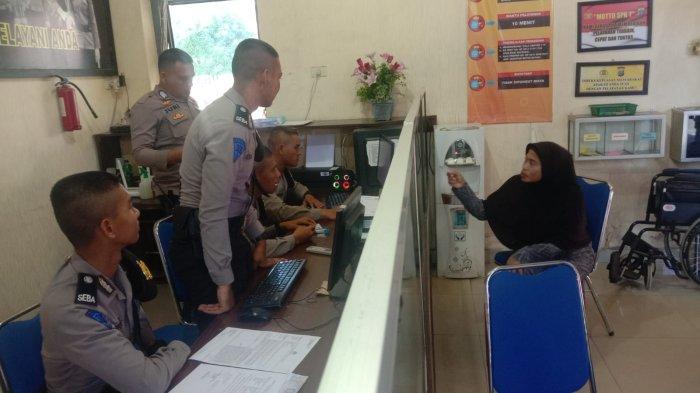 TRIBUN-MEDAN.com, TEBINGTINGGI - Sejumlah Siswa Diktukba Polri Gel I TA 2023 melaksanakan praktek menerima laporan pengaduan masyarakat di Sentra Pelayanan Kepolisian Terpada (SPKT) Polres Tebingtinggi, Senin (5/6/2023).