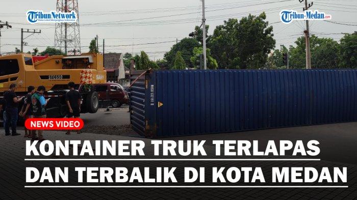 TRIBUN-MEDAN.com, MEDAN - Satu unit kontainer terjatuh dari sebuah truk bernomor polisi BK 8598 AD yang terjadi di simpang Manhattan Times Square Jalan Gatot Subroto, Kota Medan, Rabu (7/6/2023).